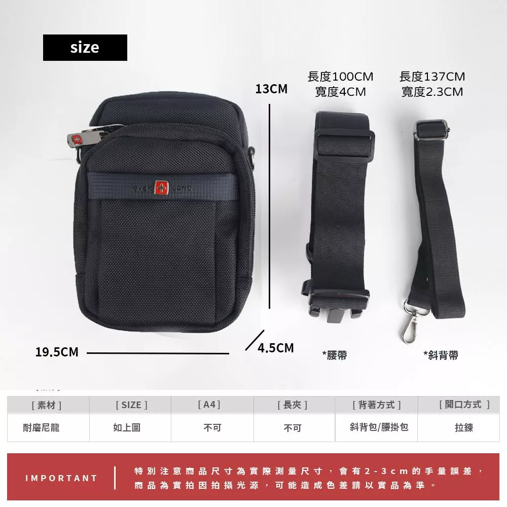 OVER LAND BackCarry 機能斜背包 腰掛包 附腰帶 3126