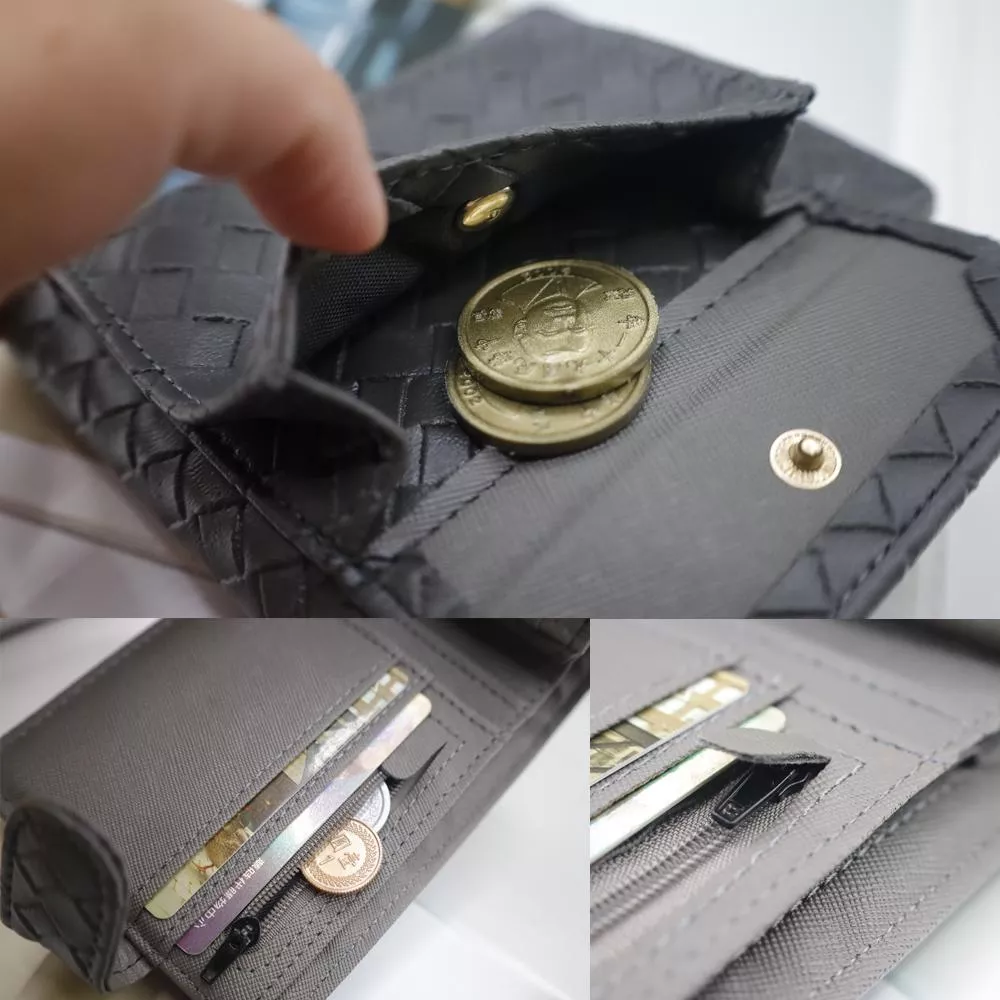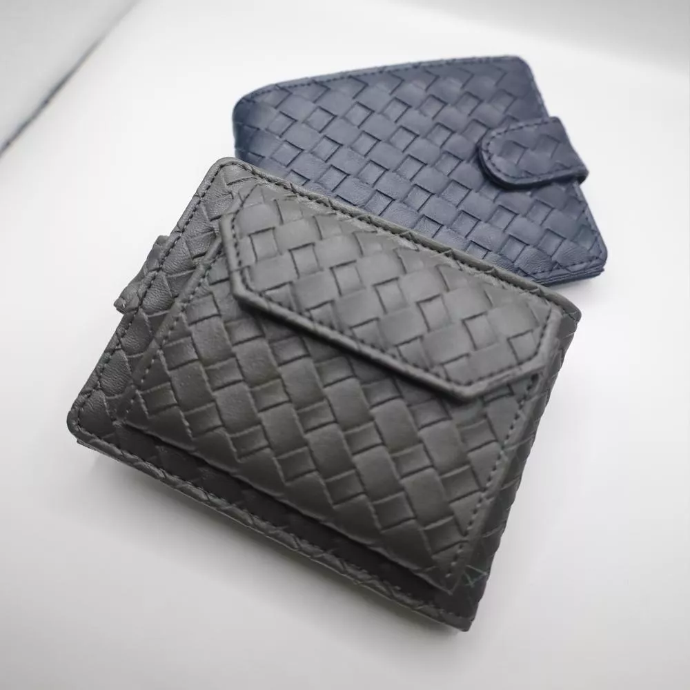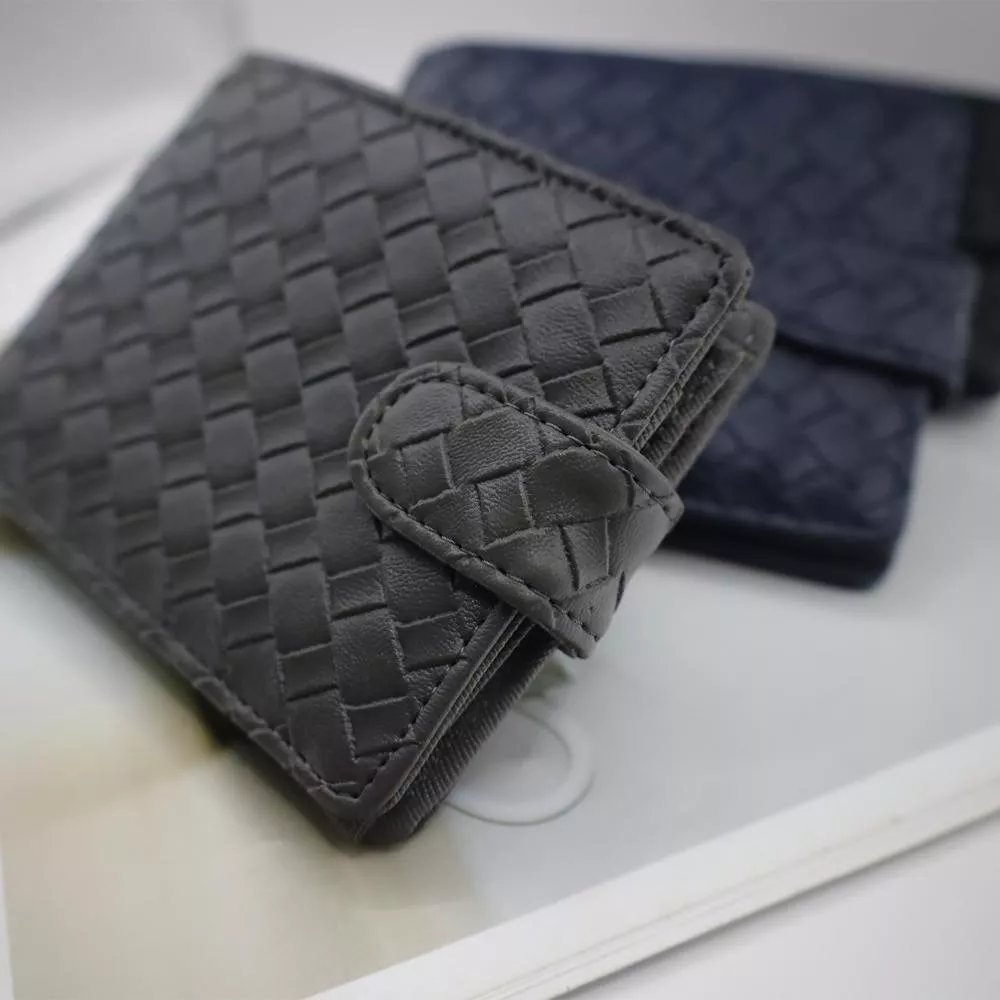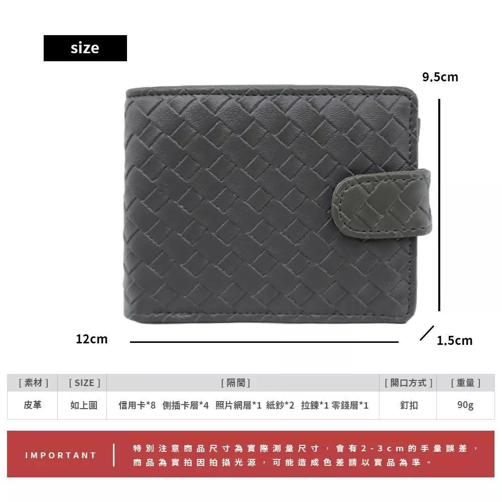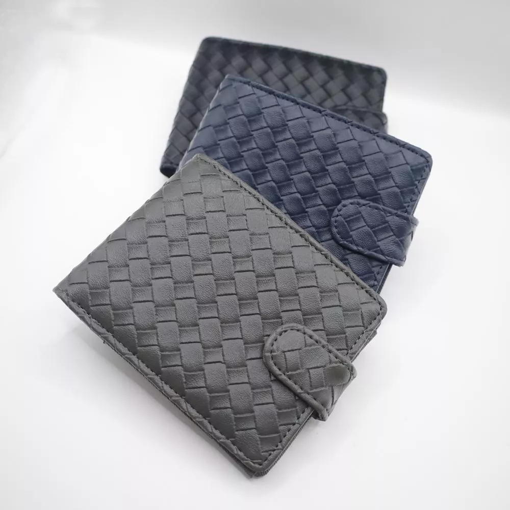 質感多卡層功紋編織單扣雙折短夾 072