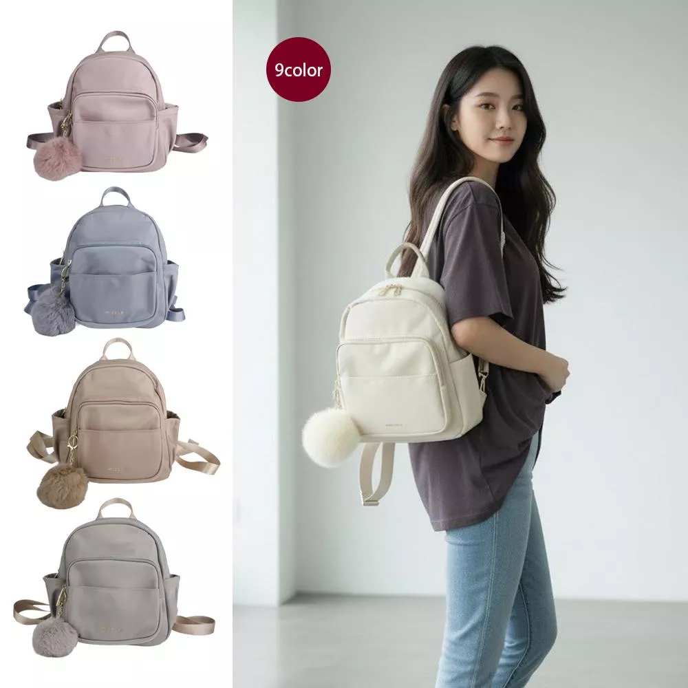 mizzue 毛球吊飾後背包 小後背 防潑水尼龍後背包 女生後背包 3201
